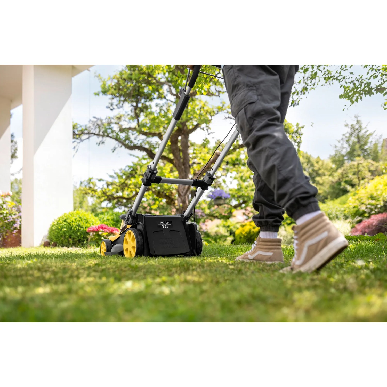 Der Yuka mini verfügt über ein schwimmend gelagertes Messer mit einer Schnittbreite von 190 mm, das eine hohe Effizienz gewährleistet und mit einer Ladung bis zu 270 m² Rasen mähen kann. Außerdem lässt sich die Schnitthöhe leicht an Ihre Bedürfnisse anpassen.