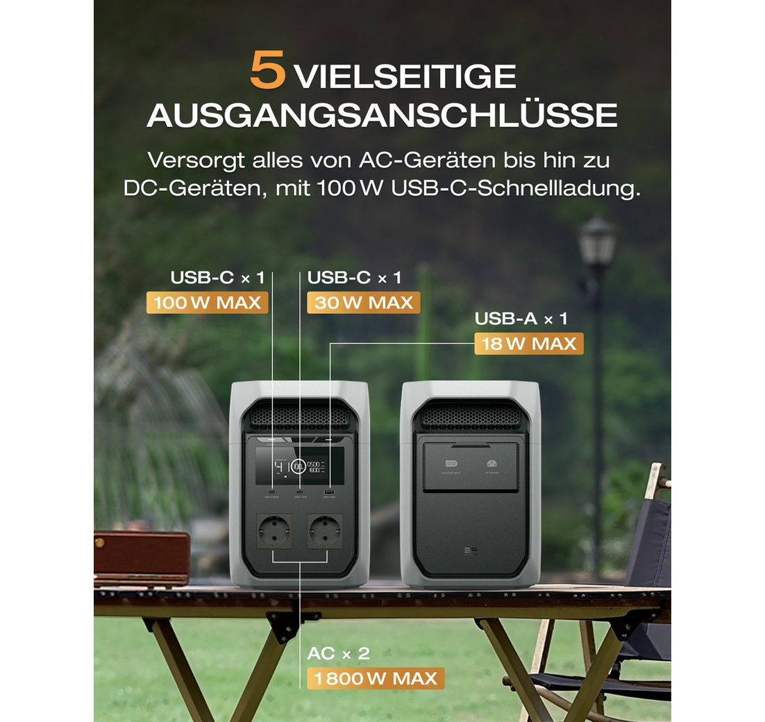 | Ausgänge | 2 x AC-Ausgang 2 x USB-C-Ausgang 1 x USB-A-Ausgang |