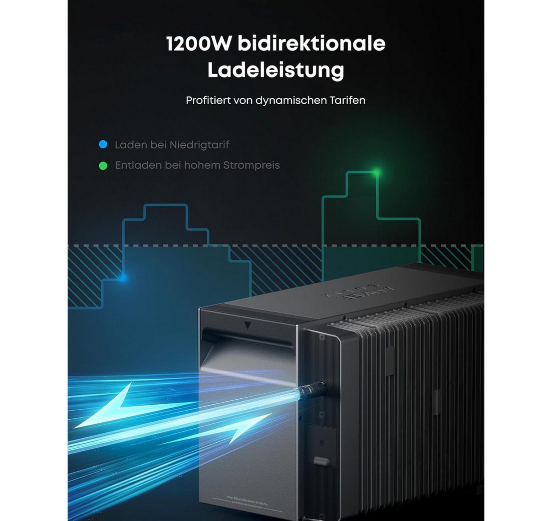 Anker Balkonkraftwerk Solix 910W Photovoltaikanlage Komplettset mit Solarbank E1600 2 Pro, 800 W, Monokristallin, (Set, 2 Solarmodule mit Anker solarbank 2 Pro Ohne Halterung/mit Halterung), Wifi, Bluetooth, IP65, Plug und Play