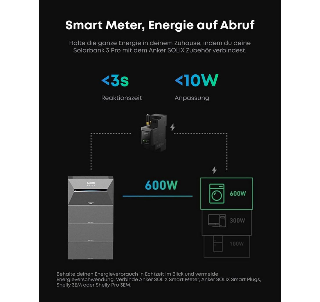 Anker Balkonkraftwerk SOLIX Solarbank 3 Pro E2700 3600W/2688Wh ohne/mit Smart meter, (Set, 1*Anker 3 pro+0/1 Smart meter+mit/ohne smart plug+mit/ohne Kable Set), IP65, LiFePO4, PV-Batterie, erweiterbar 16kW, Plug und Play