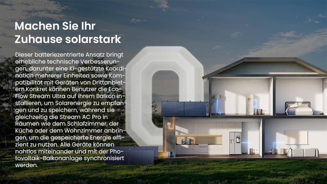 Ecoflow Balkonkraftwerk 1800W/1760W EcoFlow Stream Ultra Speicher, AC Pro mit 2 AC Zusatzakkus, (4x JA Solar und Smart Meter im Lieferumfang enthalten), EcoFlow Stream Ultra All-in-One Speicher