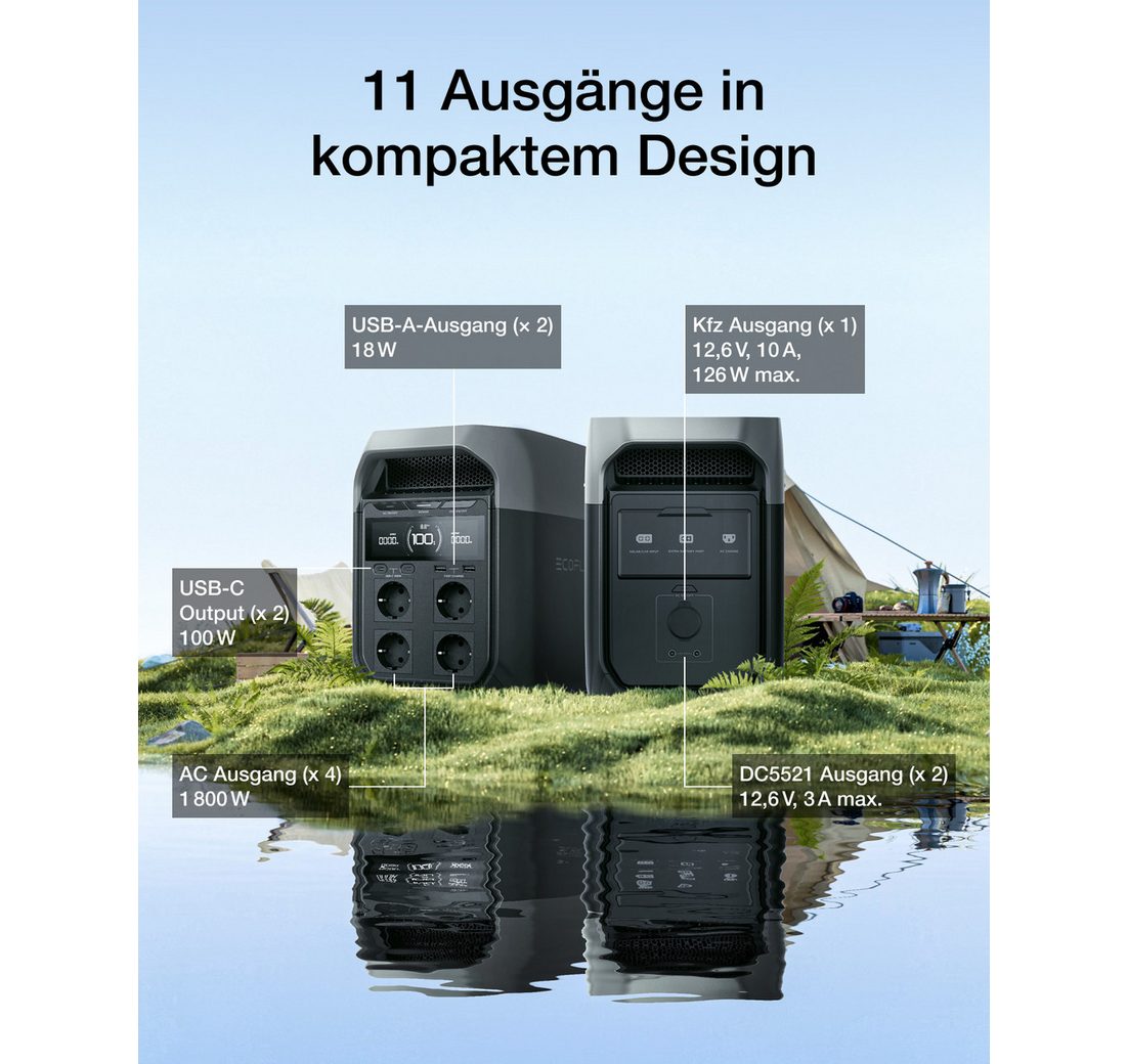 Ecoflow EcoFlow DELTA 2 Max Powerstation 2048Wh, 3000 W Solar Generator Powerstation EcoFlow DELTA 2 Max, LFP Akku 3000 Zyklen, 80% Ladung <1 Std