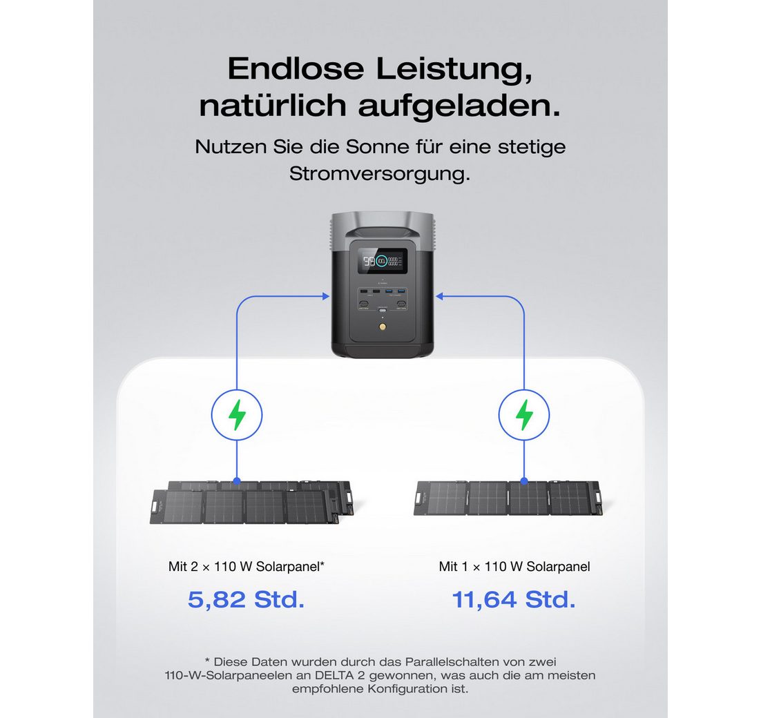 Ecoflow EcoFlow DELTA 2 Tragbare Powerstation mit 110W / 220W Solar Panel Powerstation EcoFlow DELTA 2 Tragbare Generator mit 110W Solar Panel EcoFlow DELTA 2 Tragbare Generator mit 220W Solar Panel 320000 mAh (220 V), Für die Stromversorgung, für Camping und Wohnmobile