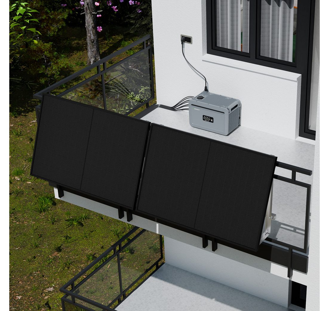 Growatt Balkonkraftwerk 1800W Bifazial PV mit Speicher Growatt NEXA 2000 2048-8192 Wh LFP, (4x JASolar 450Wp und NEXA 2000 Speicher im Lieferumfang enthalten), 4 unabhängige MPPT-Kanäle