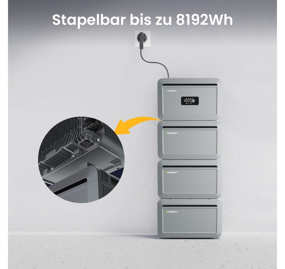 Growatt Balkonkraftwerk Growatt Erweiterungsbatterie 2048Wh LiFePO4 für NEXA 2000, (Erweiterungsbatterie für den Growatt NEXA 2000 Speicher), LiFePO4 Batterietechnologie mit 2048Wh Kapazität