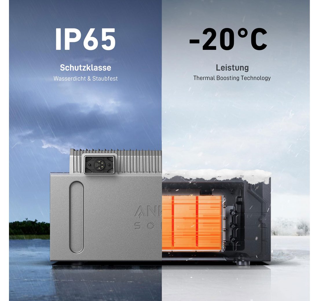 Du bleibst geschützt, wenn du die Solarbank 3 Pro auflädst, dank der Thermal Boosting Technologie, die den Betrieb der Solarbank 3 Pro selbst bei -20°C ermöglicht.