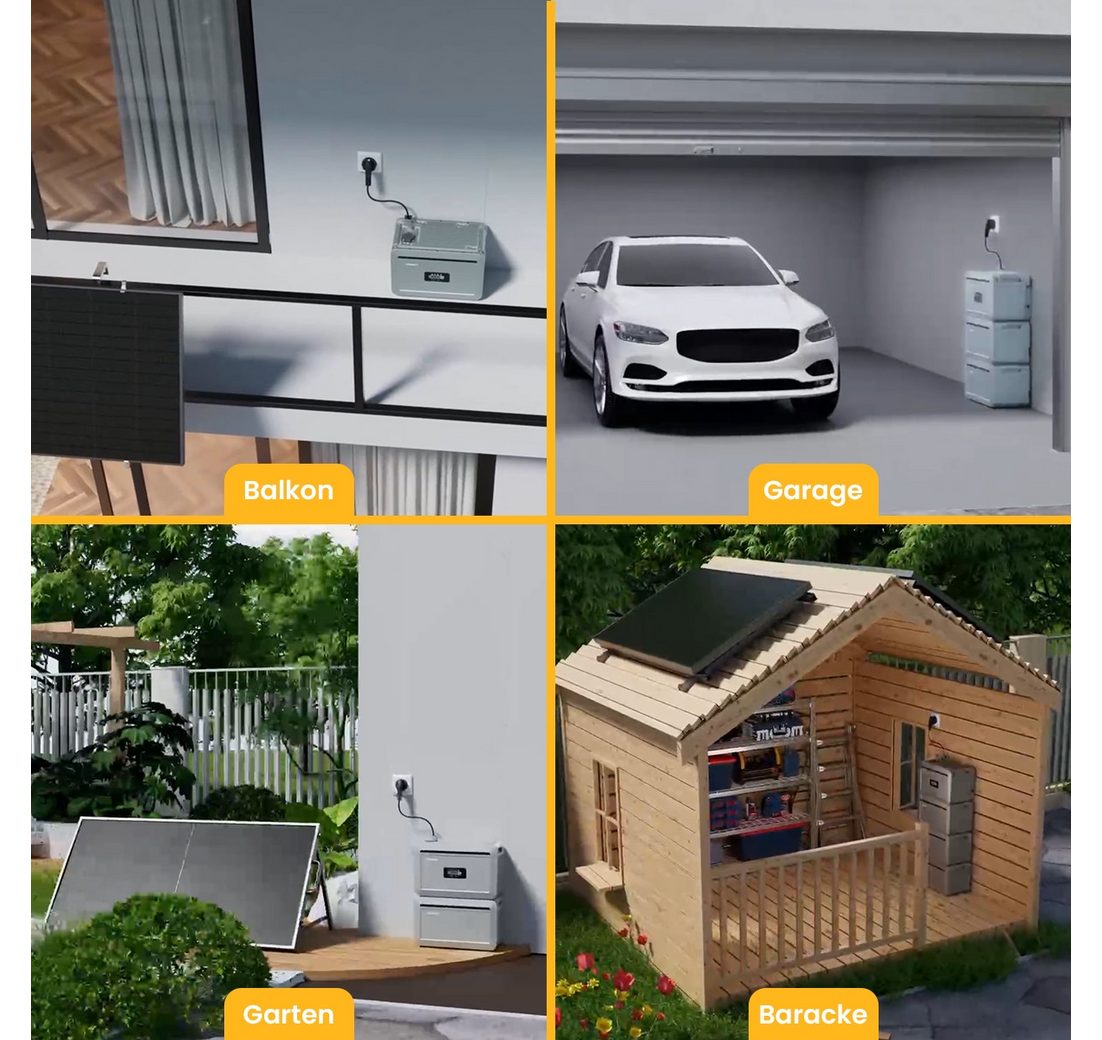 | Geeignet für | Balkon, Dach, Terrasse, Fassade, Garten, steckerfertige PV-Anlage, private Nutzung, Haus & Garten, Eigenverbrauch, Privathaushalte, Mieter & Eigentümer, Plug & Play Systeme |