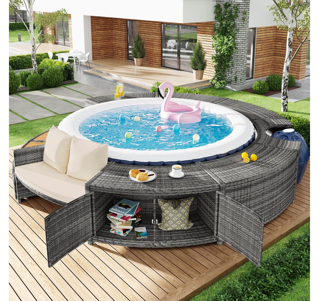 Die stilvolle Marmor-Optik (Marquinia) und der semitransparente Liner verleihen Deinem Außenbereich eine luxuriöse Note. Der Boden in Polygon-Optik unterstreicht das moderne Design und sorgt für eine edle Atmosphäre. Der semitransparente Liner in Kombination mit dem LED-Streifen macht den Whirlpool zu etwas ganz Besonderem und schafft eine stimmungsvolle Atmosphäre, die Deine Entspannung noch vertieft.