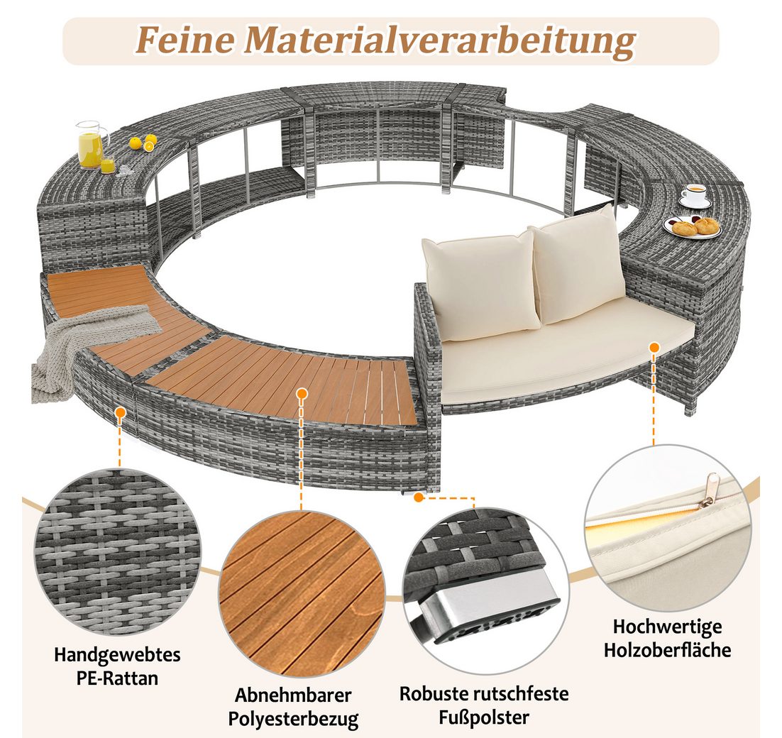 Hinweise| Warnhinweise | Achtung! Aufbau nur auf absolut ebenem, tragfähigem und waagerechtem Untergrund.Kinder dürfen den Whirlpool ausschließlich unter Aufsicht einer erwachsenen Person benutzen.Der Whirlpool muss gemäß der Gebrauchsanweisung gesichert sein (z. B. Abdeckung/Sicherungsmechanismen), um ein unbeaufsichtigtes Betreten zu verhindern.Aus gesundheitlichen Gründen darf die Wassertemperatur 40 °C nicht überschreiten.Nicht hineinspringen – Verletzungsgefahr aufgrund der geringen Wassertiefe. |