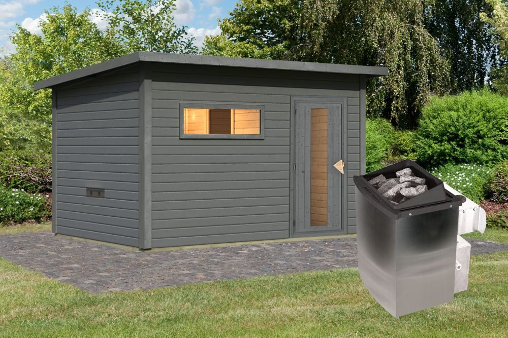 Die Außensauna Siena mit modernem Design und Flachdach eignet sich ideal für Ihren Garten. Sie verfügt über eine gemütliche Eingangshalle und einen großzügigen Saunaraum für 6 bis 8 Personen. Das Saunahaus wird mit dem im Set enthaltenen Zubehör (Dacheindeckung, Saunaofen, Zubehör für den Ofen und weitere Zubehör-Utensilien) geliefert. Wir haben für Sie ein Rundum-sorglos-Paket zusammengestell.