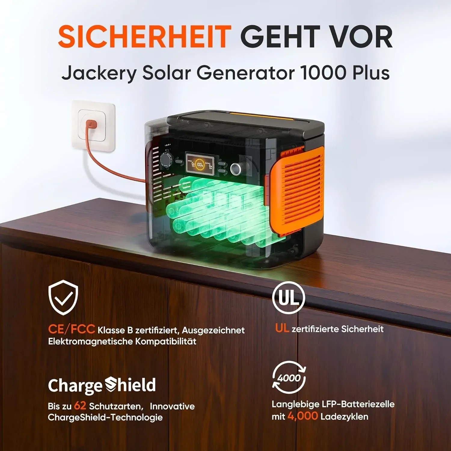 Erleben Sie Sicherheit auf höchstem Niveau mit Jackery 1000 v2 tragbare Powerstation. Ausgestattet mit der aktualisierten ChargeShield 2.0-Technologie bietet es verschiedene Lademodi, darunter Schnellladung, Notfall-Superladung und flüsterleises Laden. Stellt sicher, dass Sie immer mit Strom versorgt und einsatzbereit sind. Mit doppeltem physischem Schutz mit 62 Mechanismen innen und außen, die umfassende Sicherheit für ein beruhigendes Gefühl beim Energieverbrauch bieten.