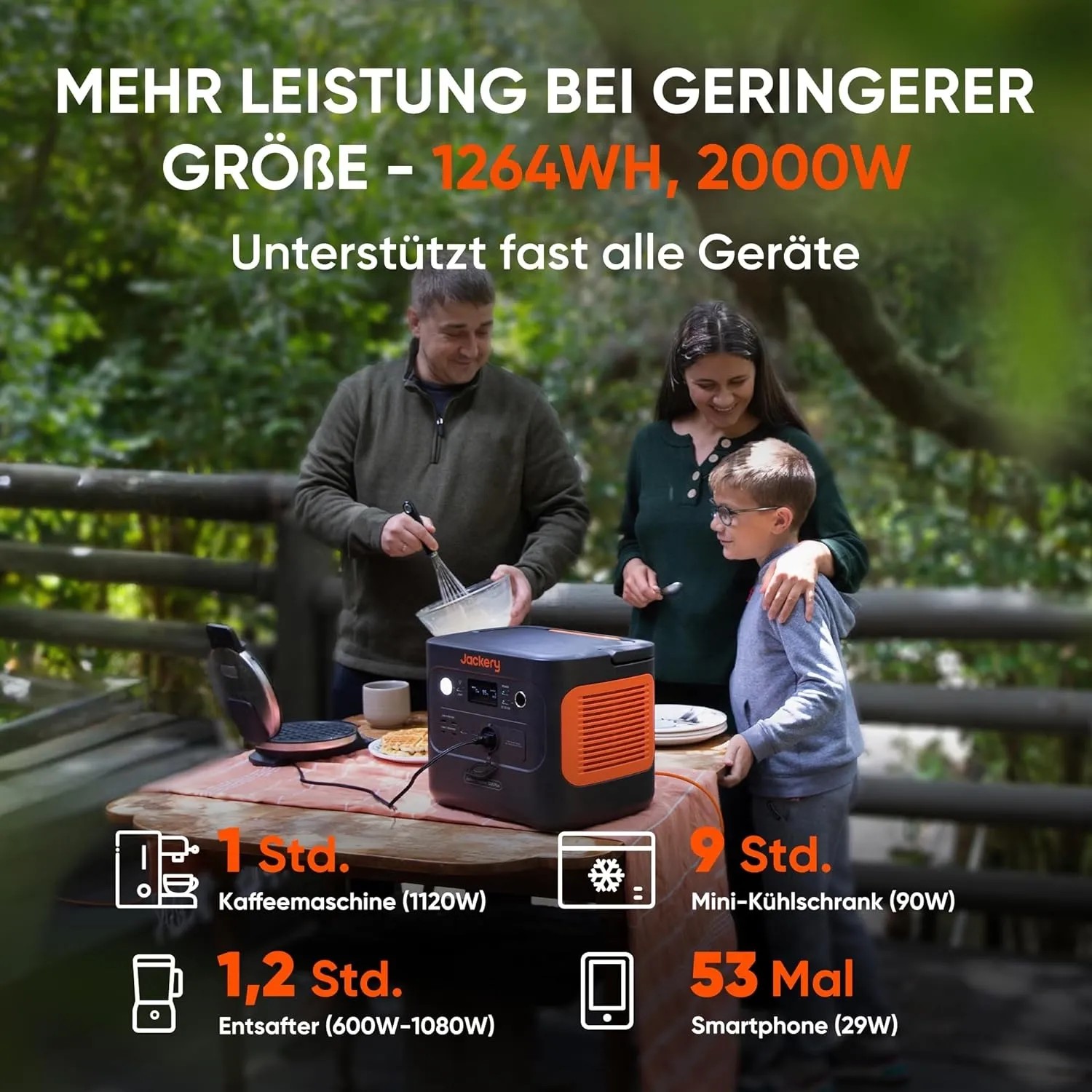 Beachte bitte: Der tatsächliche Stromverbrauch variiert je nach Nutzungsbedingunen. Bei Fragen wende Dich bitte an Jackery Kundenservice für bessere Kaufentscheidung.